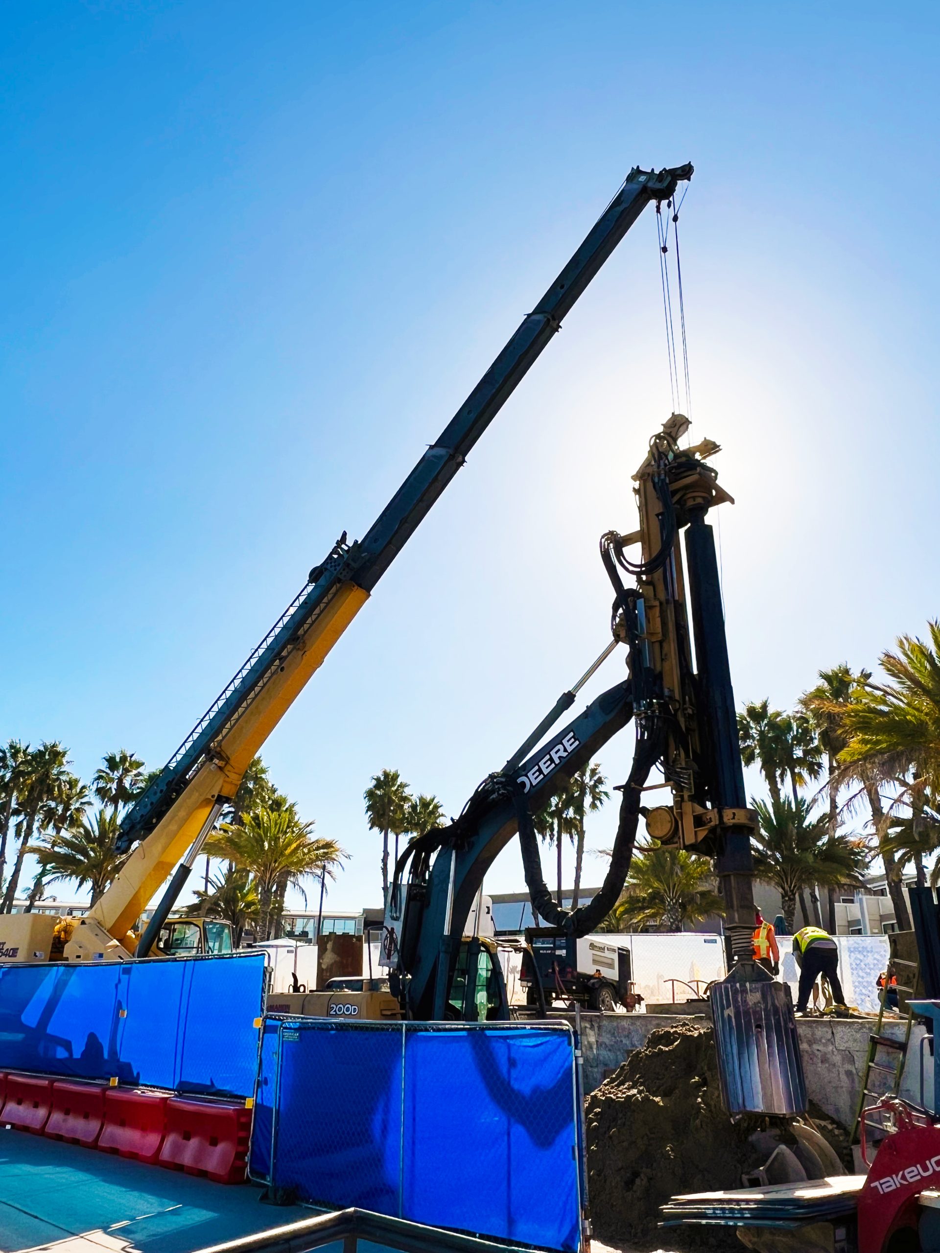 The scope of work included the installation of 24 epoxy-coated 24-inch diameter piles extending up to 117 feet in length, with embedment depths of approximately 50 feet to achieve the required structural capacity. The corrosion-resistant coating was critical due to the project’s proximity to the Pacific Ocean and the harsh coastal conditions in Coronado and throughout San Diego County.
